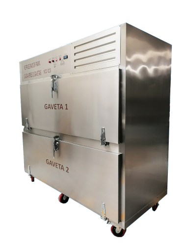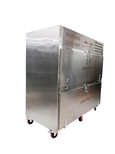 Nuestro refrigerador de cadáveres, diseñado específicamente para uso médico forense, ofrece dos gavetas horizontales para la preservación adecuada de cuerpos en condiciones controladas. Con capacidad para almacenar de manera segura y respetuosa, este equipo garantiza la conservación de los cuerpos mientras se llevan a cabo investigaciones forenses.