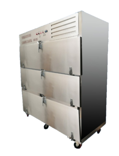 Nuestro refrigerador de cadáveres, diseñado específicamente para uso médico forense, ofrece dos gavetas horizontales para la preservación adecuada de cuerpos en condiciones controladas. Con capacidad para almacenar de manera segura y respetuosa, este equipo garantiza la conservación de los cuerpos mientras se llevan a cabo investigaciones forenses.